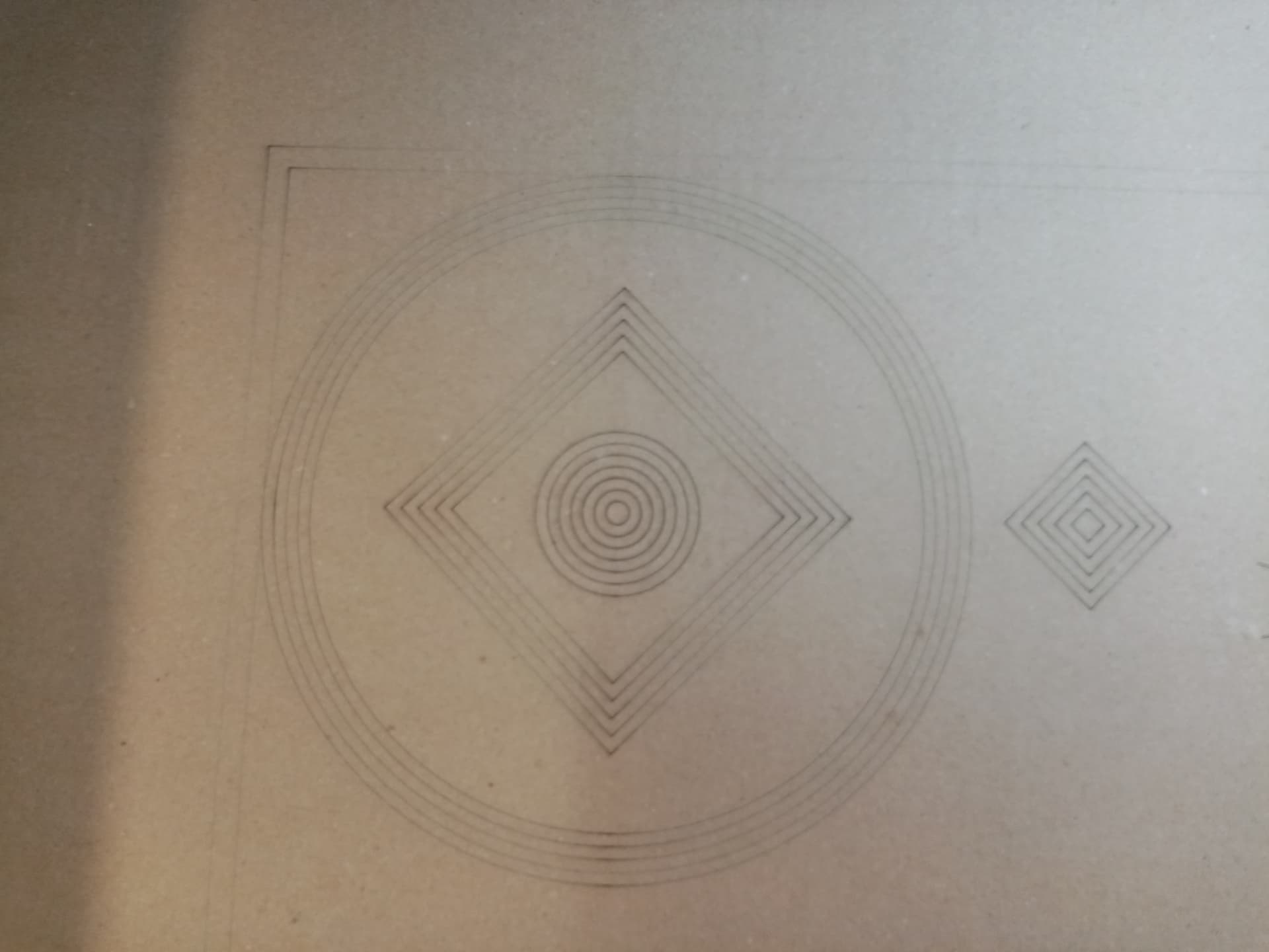 Scale that pattern uniformly to fill the platform and run it as fast as it will go in Line mode with optimizations turned off and power set to mark a sheet of cardboard. Any differences from the design will be informative; a photo will let us look over your shoulder.