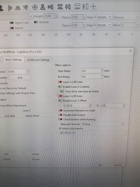 Ok.. That was the hardware mostly done. But I needed to control the Lasers. The Ruida does handle 2 lasers however it is fifficult to split the type of lasers between them.