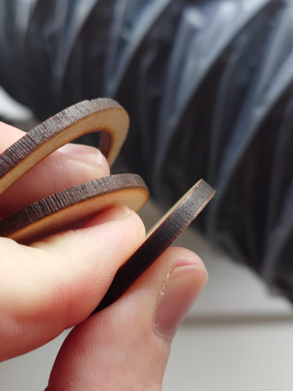 Just to add, this is an MDF circle from another machine ( not Gweike ) but with almost identical settings. You can see the 2 cuts from the Gweike in my hand also. The difference is night and day !