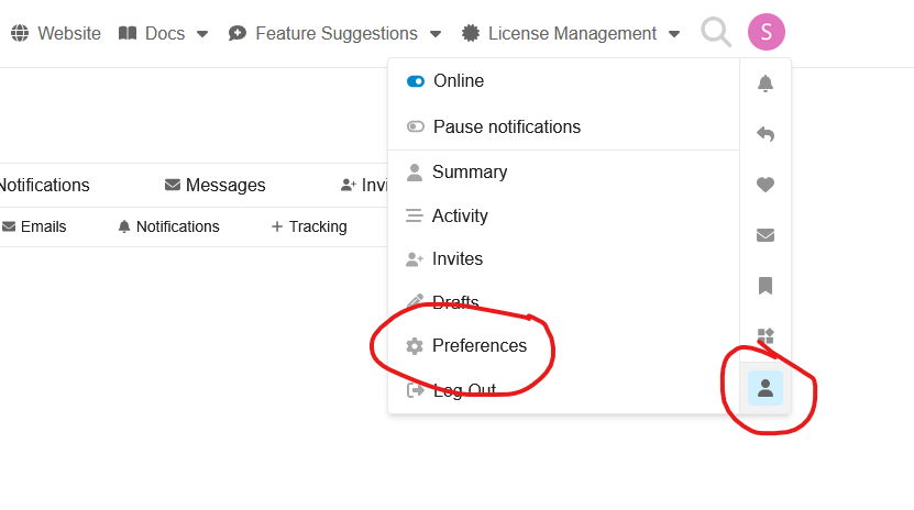 In the upper right hand corner of the page, Click on the Round Circle with your First initial in it (S)