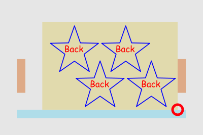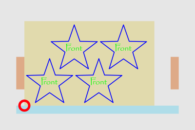 With all the fronts done and the sheets stacked, I can then jog to the right front corner (red circle) and have the machine engrave the backs (red) and then cut (blue) the parts free, starting from the current position with the job origin on the bottom right, repeating for each sheet in my stack.