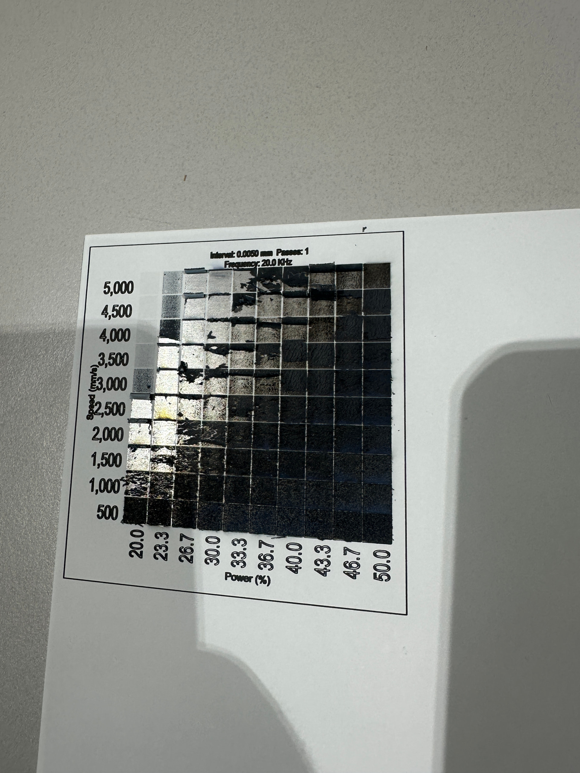 Do a material test. I have a 30W MOPA fiber laser, I can’t remember my settings right now. I usually start to google and find similar projects and work from there.