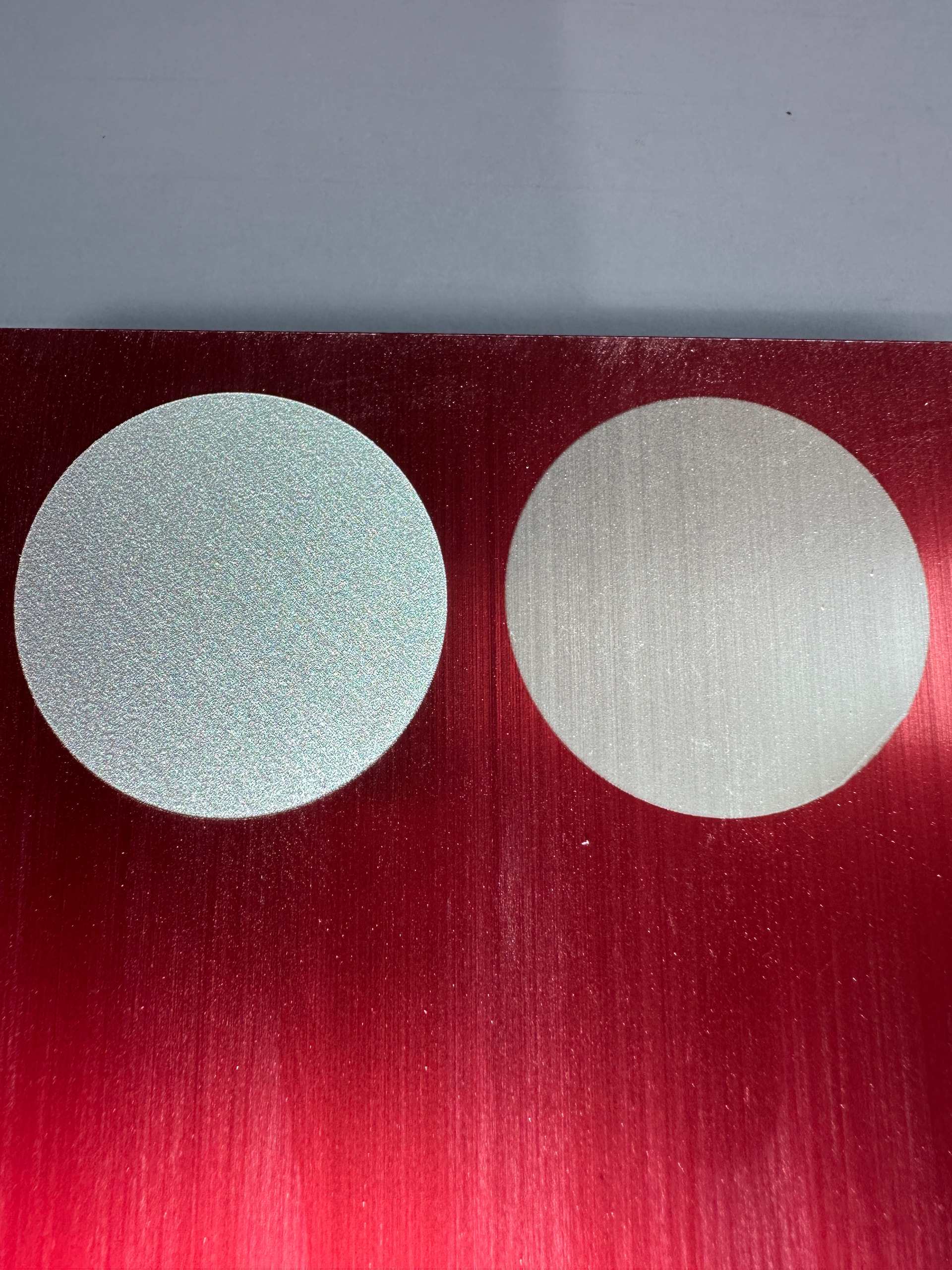 Correct me if I’m wrong but then engraving Anodized Aluminum with a fiber laser it will remove the anodized layer but when engraving it with a Diode laser it just makes the anodized layer whitish. Attached is a photo the left circle is fiber and the right is diode. On the fiber laser I can feel it went into the aluminum but on the diode circle its smooth. Let me know