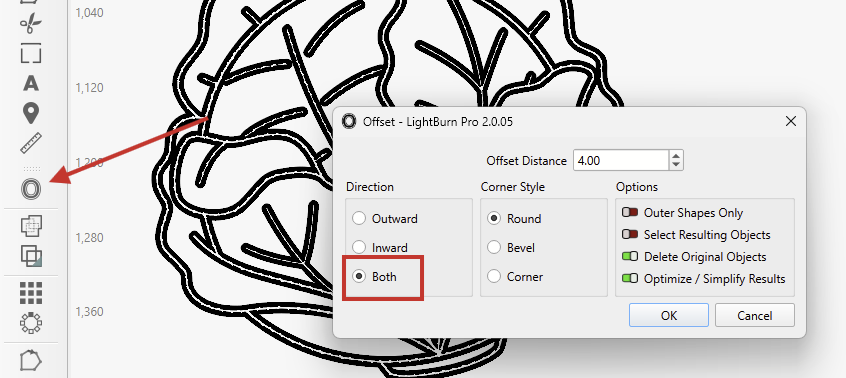 Is it possible to increase the thickness of the lines in a vectorized logo, as in Inkscape?