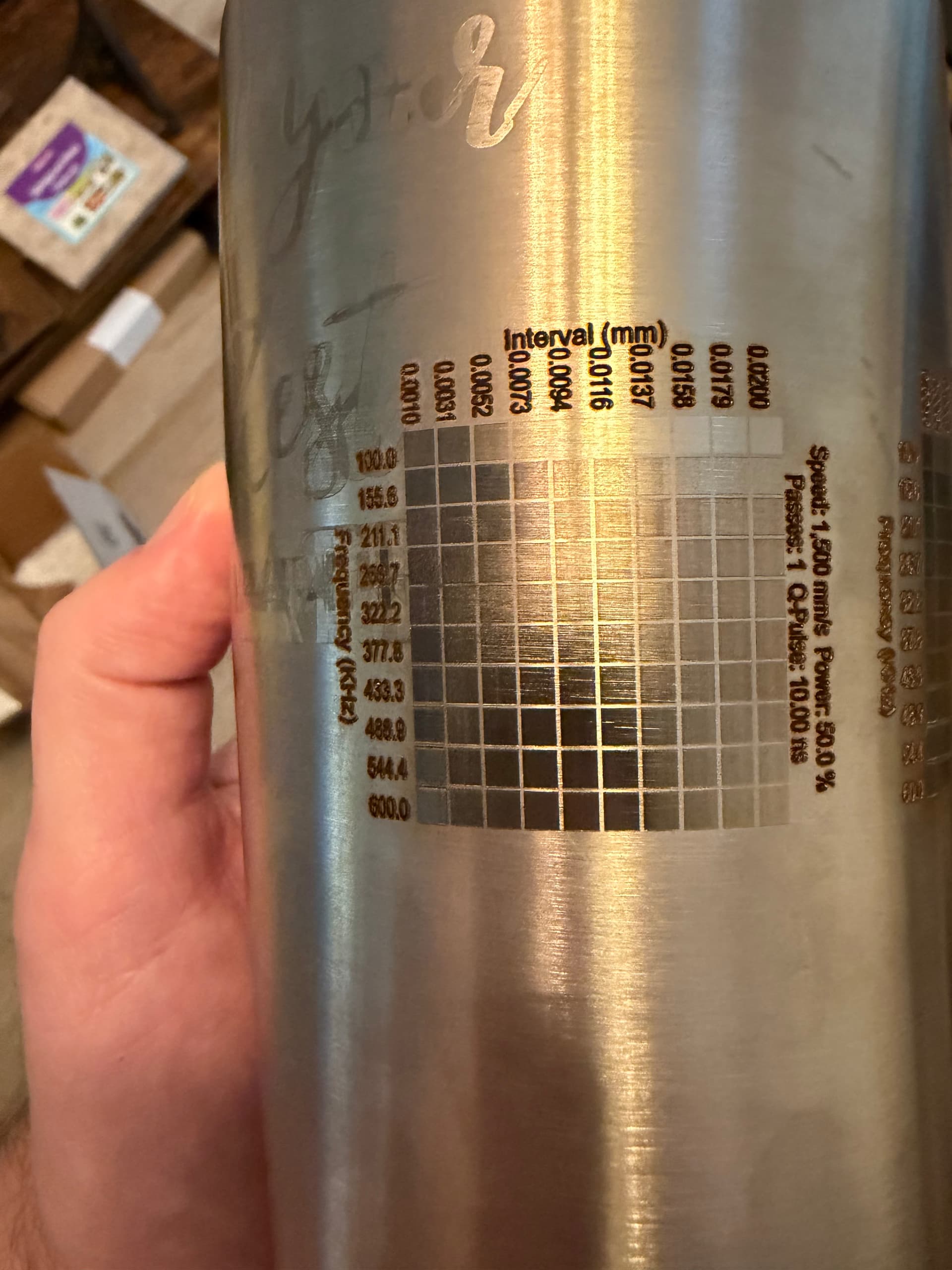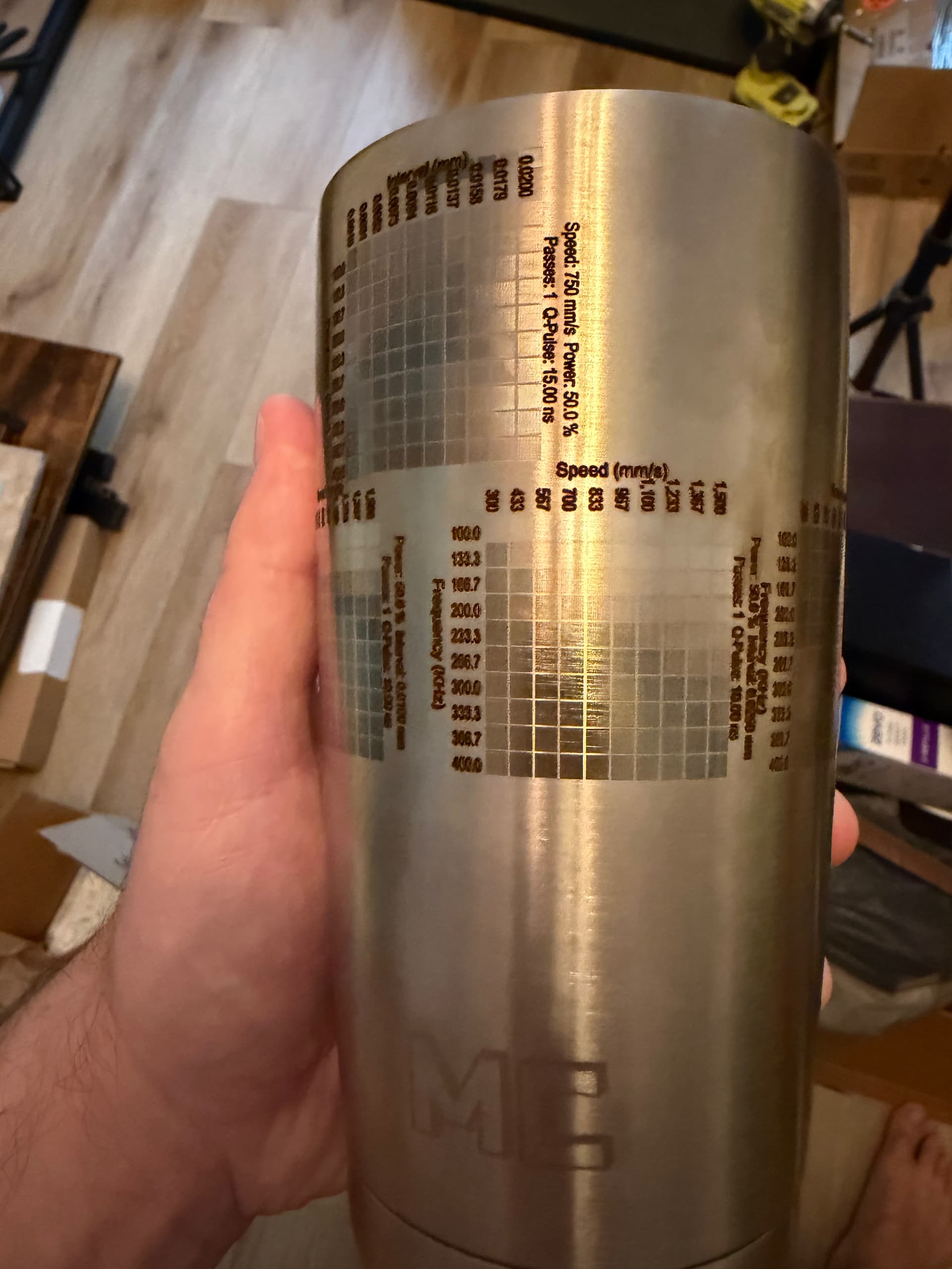 I think the issue is the nature of the test grid itself, on the flat it fills each square individually, with rotary it fills each slice (depending on optimization settings) so heat profile and power density (Maybe same thing) are different, and precise control of heat is what gives the stainless the colors.