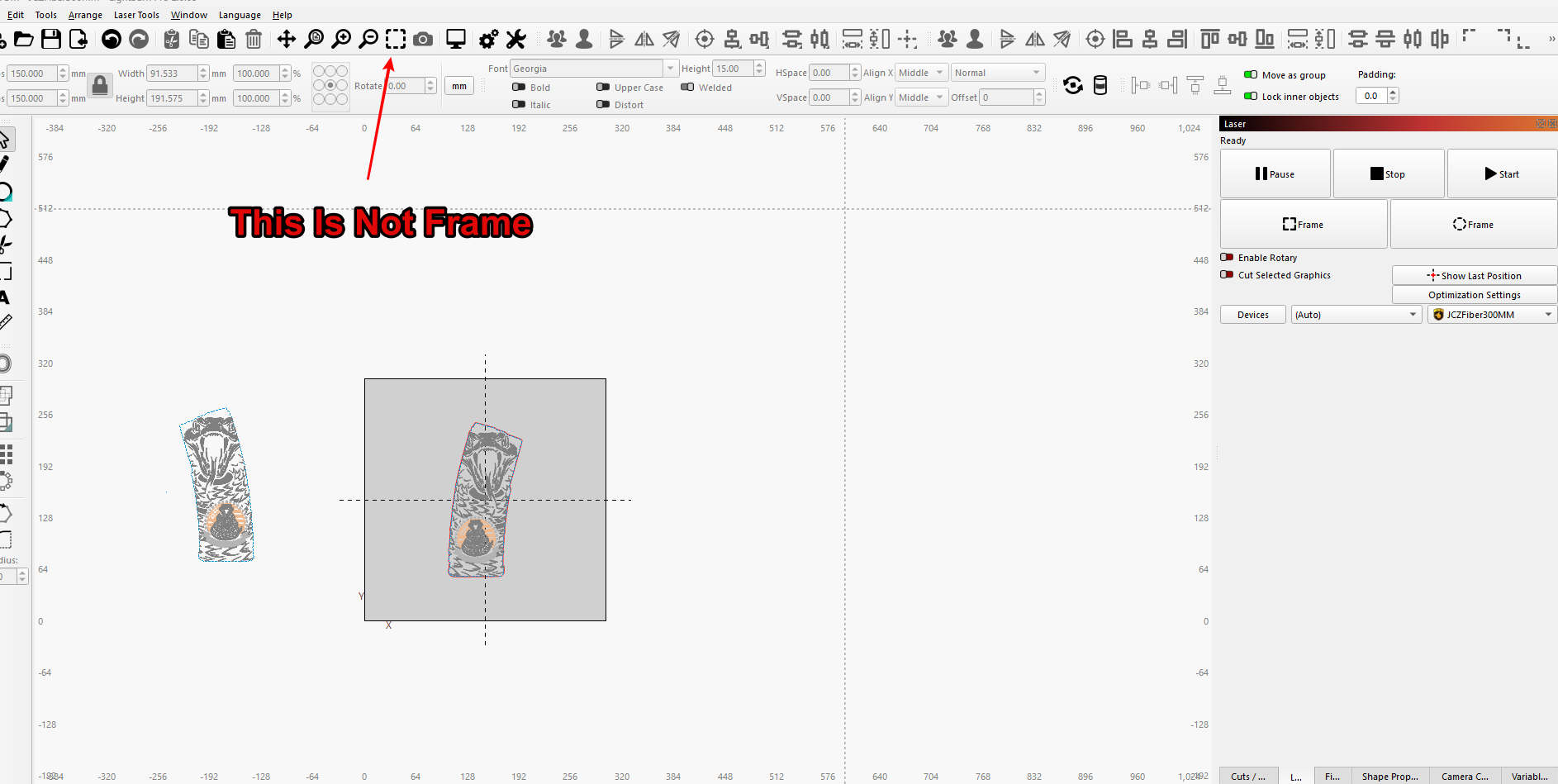 If I understand correctly, this icon doesn’t send an order to the laser to create the frame of the work. I understand the similarity, but this icon zooms in on the frame area.