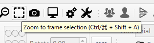 Zoom in or out to show all selected objects as large as possible, centered within your view. If no objects are selected, it will instead zoom to show all objects in the Workspace