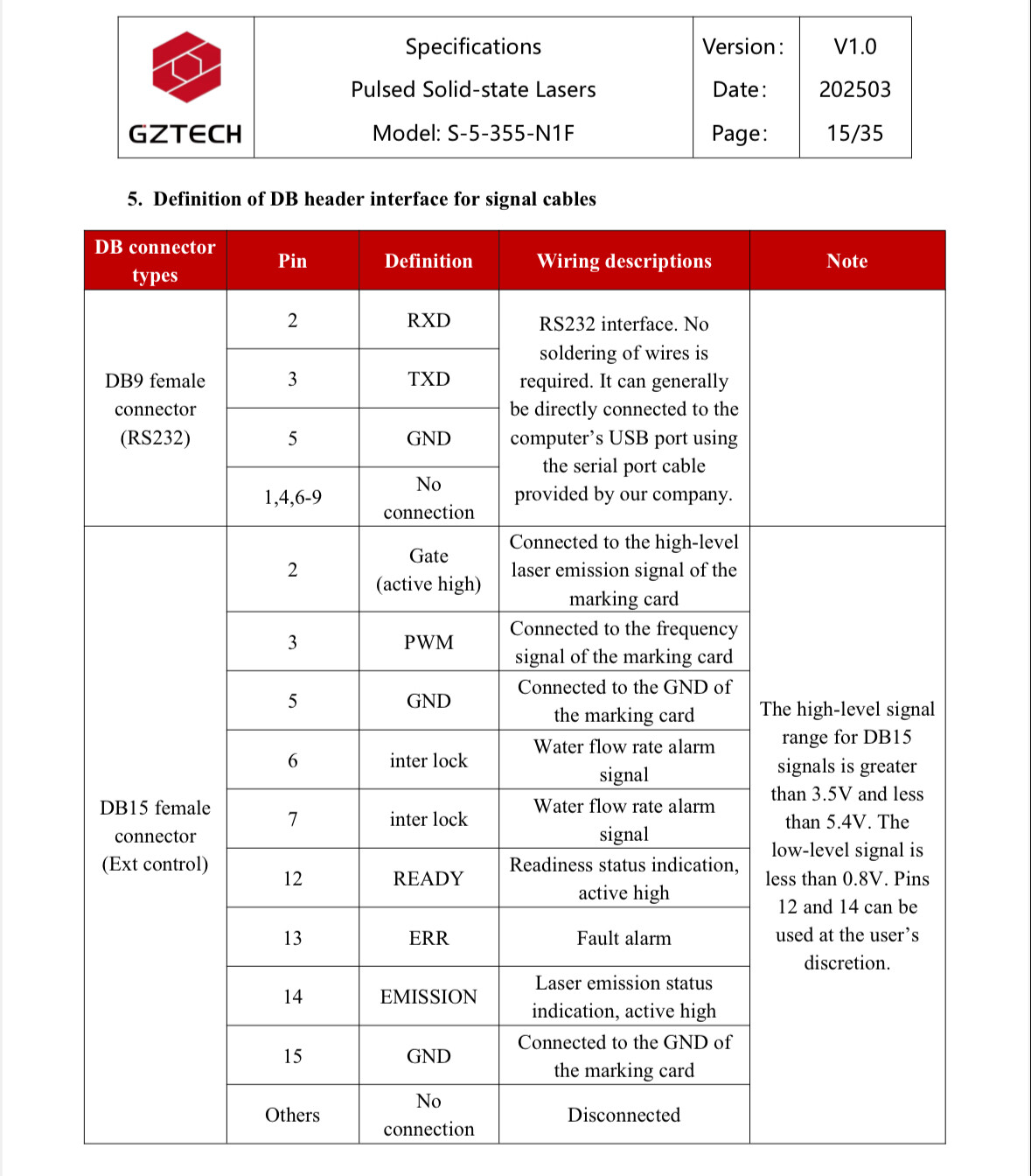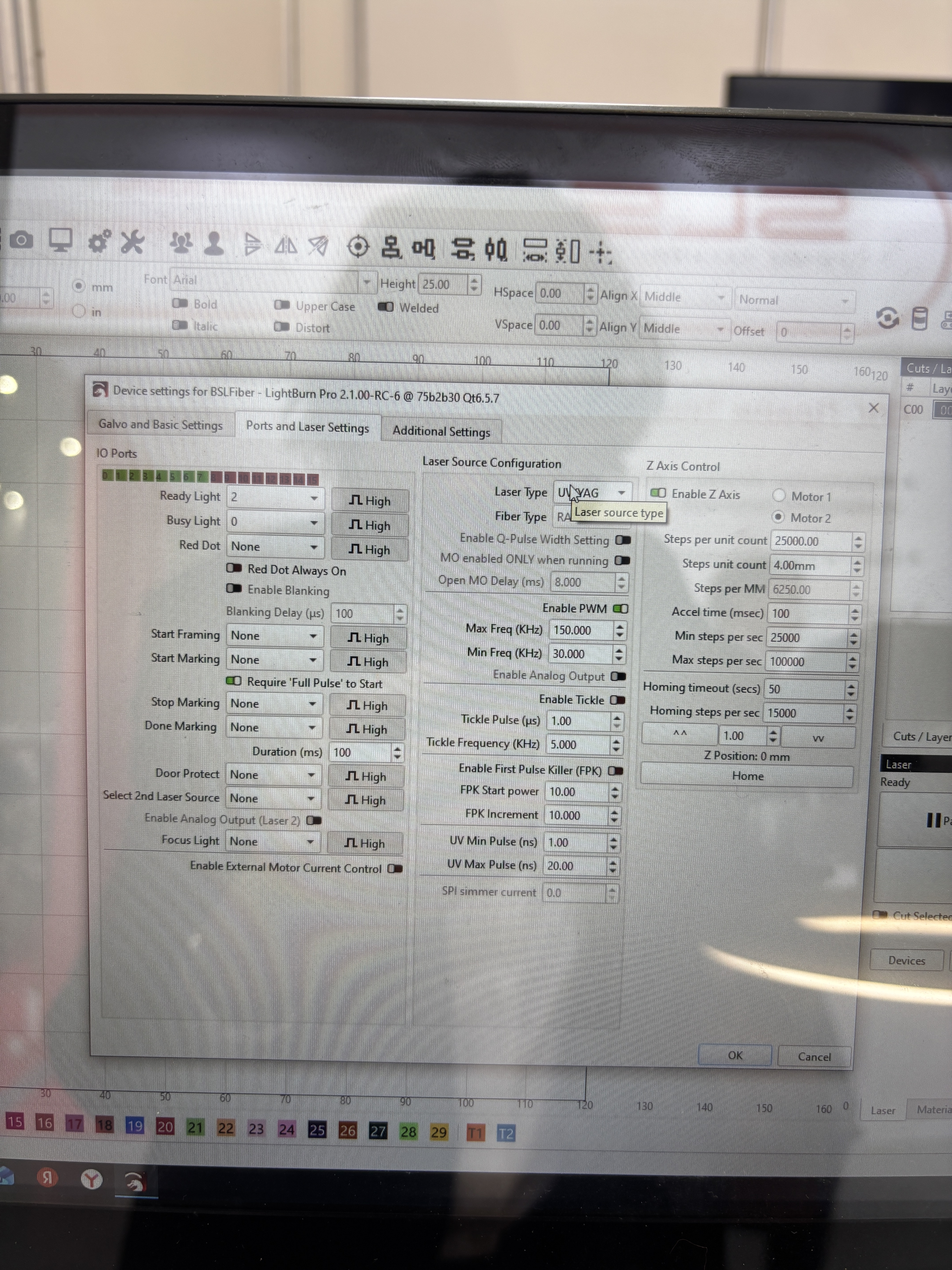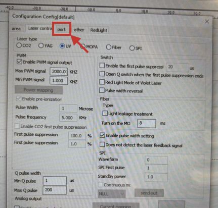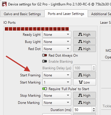 Yes, all ports disactivated. Problem only in dbk22b with Uv laser from GZTech. I asked BSL last night. They said the problem on lightburn side(maybe). When i click Frame, gate state is 1, but for GZT gate must be 0, set 1 only for marking. For example dbk22b have 2 pins for framing. Gate pin(must be 0) and Redpt pin(must be 1). Please check this information. I know that JPT has inversive gate. Now i only can use hardware for set in a frame gate is 0, for the difference use 1 in a Redpt. Thank you!