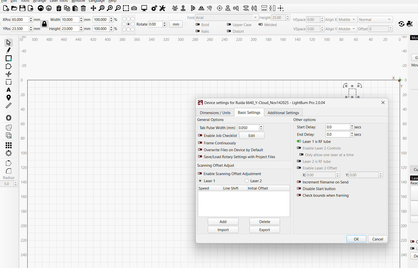 Hello I have a Gweike Cloud RF laser and have had this machine for about 4+ years. It has worked in the past but recently have found that it is not firing on start up and after a lot of time trying to run a job it mysteriously kicks in and starts to fire. It is set to Packet (vs Serial) and I’ve tried both without success. The machine is framing correctly and also following the design whether it’s laser cutting or engraving. All that is good - the laser itself is not firing.