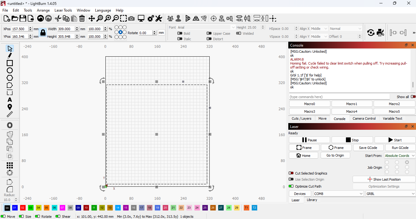 I need help with my machine, once I turn on the machine the motors gets stiff and can’t move. Lightburn keep saying there is HARDLIMIT issues. help…