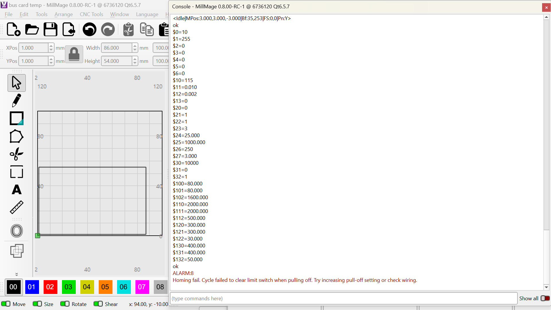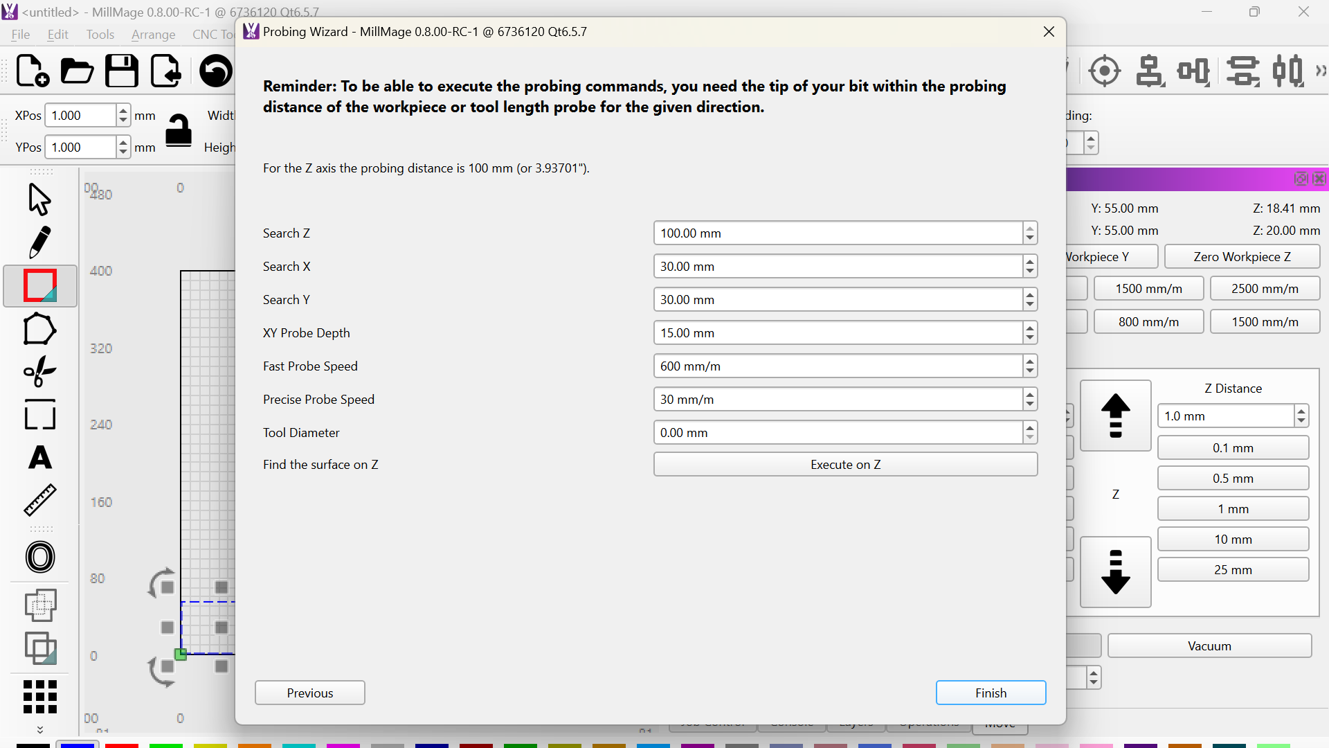 I am fed and it is hasn’t got hot yet this morning so I started over from the beginning. I got the machine to home correctly and frame correctly. I set the z prob block height (15mm) the spindle came down and touched the block 2X and I hit start the spindle moved