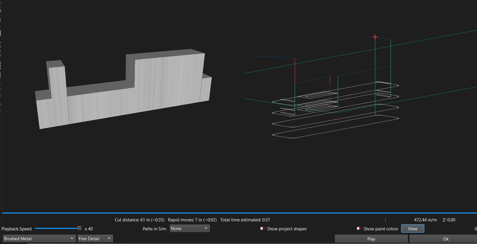 For example here in order to get clean edges the pockets must extend past the profile cut. Otherwise you will get the round of the inside of your pockets from your end mill.