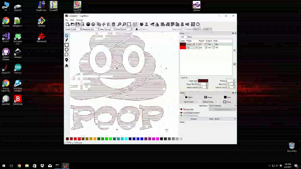 The image of Tinkerbell is burned first, then the outline is cut with a laser. Google Youtubes on how to make Christmas ornaments with a laser. It is basically the same process.
