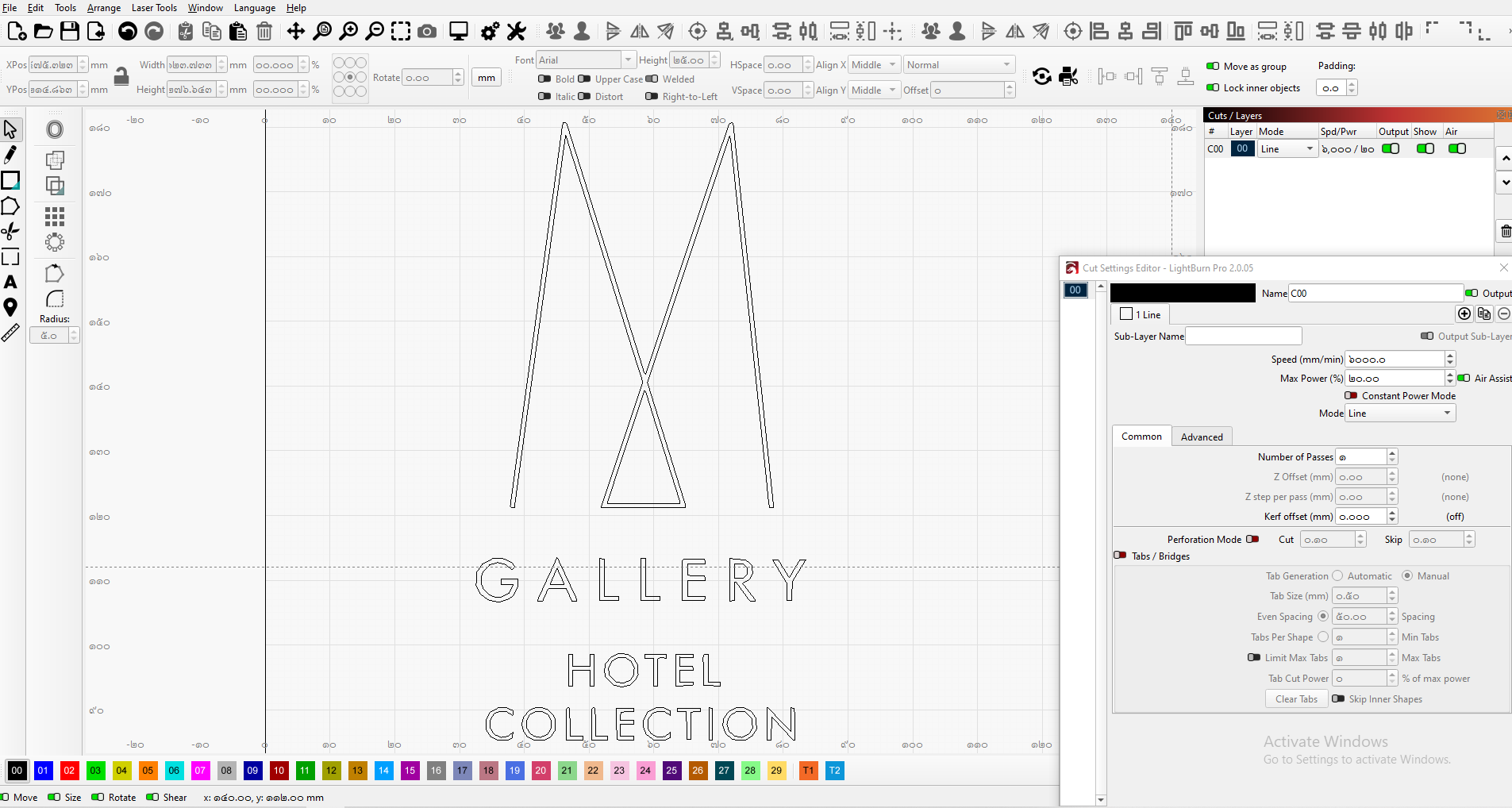 If you already have the font style you want to use but it is solid text, then you can set it to Line option (Not Fill) on that layer or use the Trace tool to get the outline of each letter, select it as Line (Not Fill) in its Layer and set the Speed and Power.