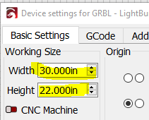 The machine work area (my term for it) is a fixed space. That is also the grid area displayed by Lightburn.
