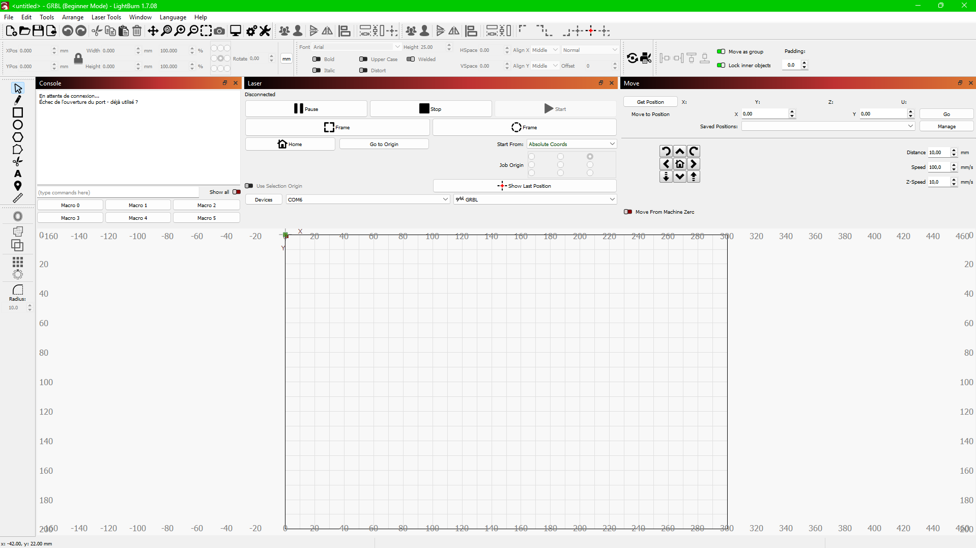 Reading the manual. Did you set the parameters for LaserGRBL first? It says to use Lightburn you need to reset the settings. Page 29