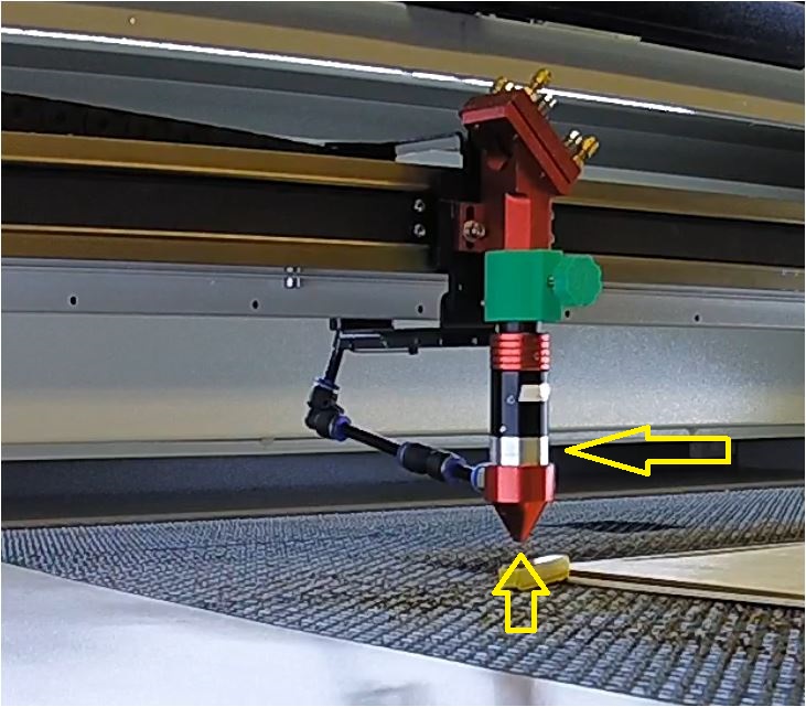 this combination, of about 11mm off the surface (FP) and about 15psi is perfect for cutting acrylic and wood
