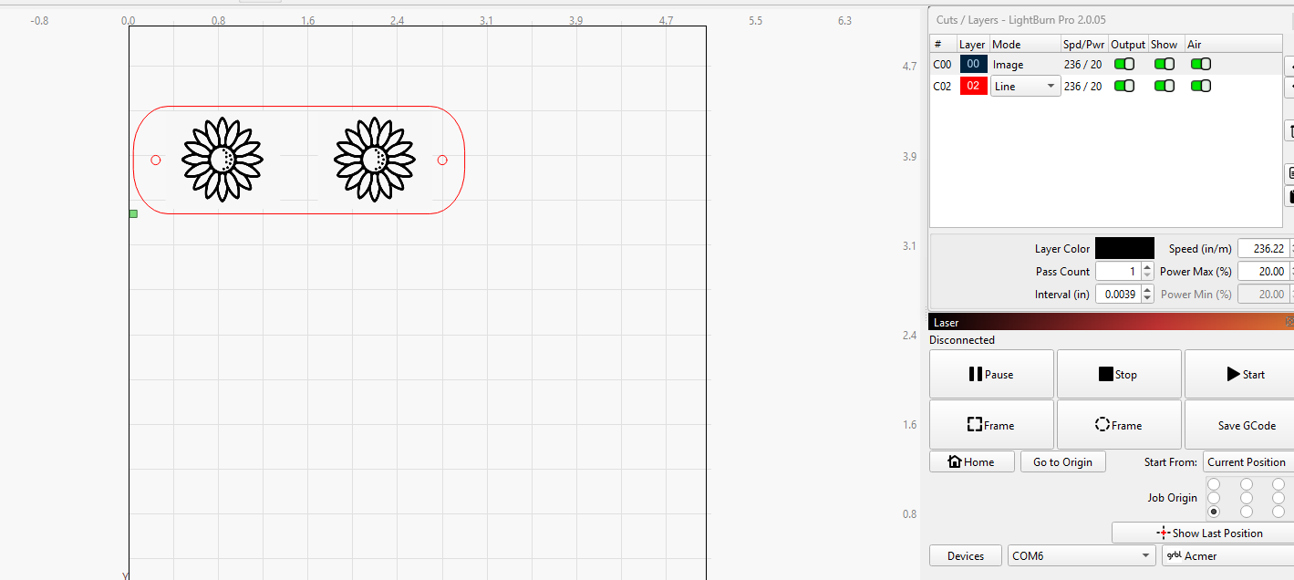 All I want to do is make faux leather hat tag labels. I created the tags no problem, but when I try to add a cute little icon or image to the label (i.e. a sunflower), it show “Image” in the Mode column and not “Fill.” When I view the preview, it shows the sunflower being made and the label being cut, but when I hit start, the laser (Acmer S1 25W) only does 3 passes and then says “Busy.” Nothing else happens. I’ve watched tons of videos and the Mode column always says “Fill.” I’ve never seen “Image.” And I’ve used AI & Inkscape to convert the icon into SVG and it still won’t work. What am I doing wrong???