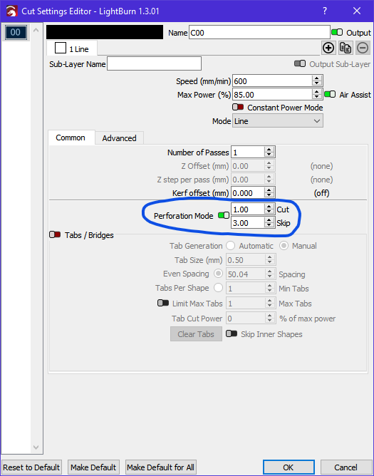 I don’t think the linetype information is used by LightBurn but there is a way around it. If you make your stitch lines in AI a different colour, LB will put them on a different layer to the other vectors. You can then set the ‘Perforation Mode’ to on.