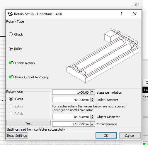The rotary initializes fine when I start the laser. I have rotary enabled in LB too.