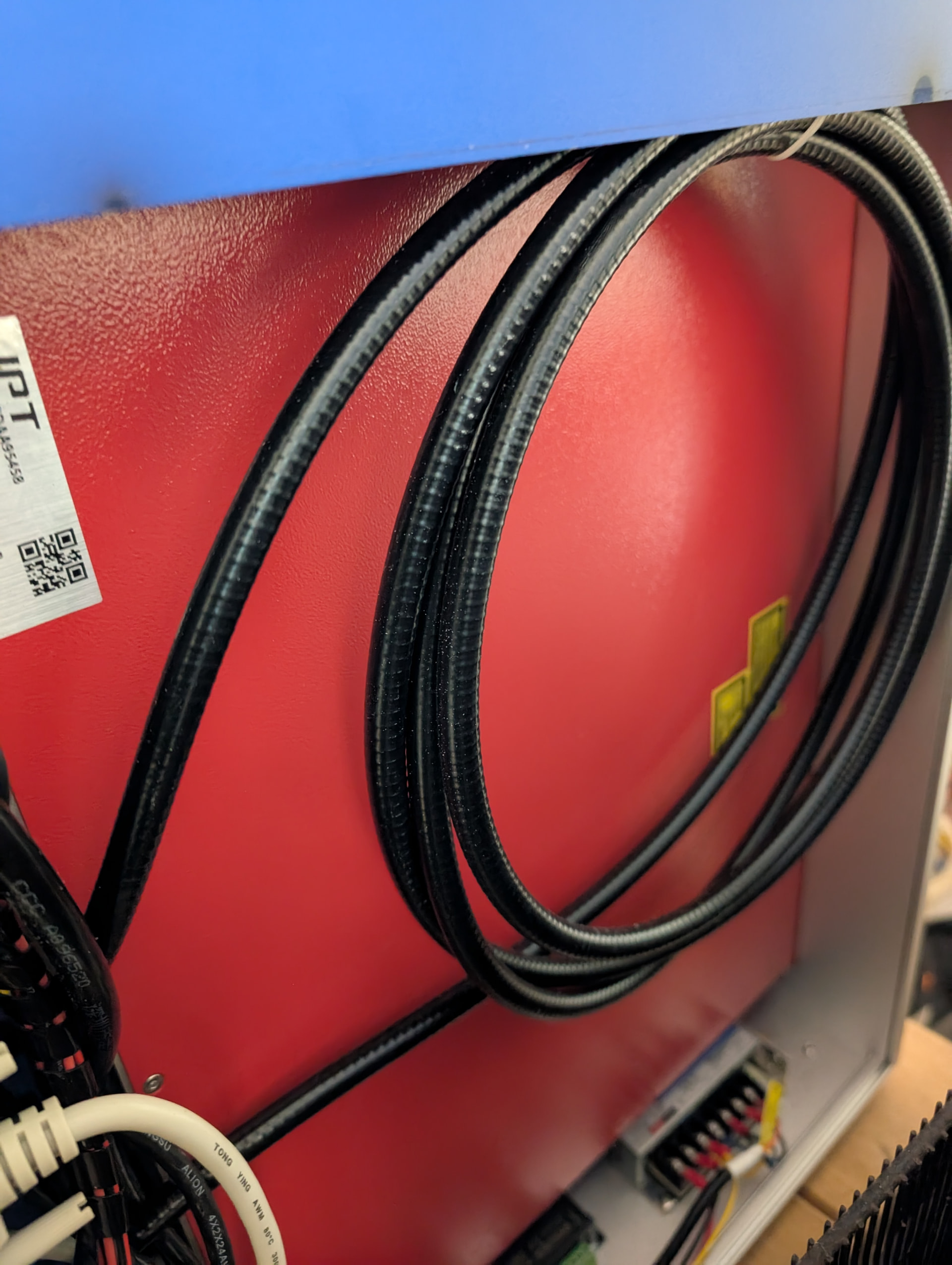 It only had few feet of cable from the MOPA source to the galvo. But I took off the side and found she was hiding a secret