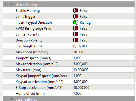 I’m also not really sure about the meaning of the other settings like “Enable Homing,” “Limit Trigger,” “Invert Keypad Direction” (I don’t even have a keypad!), or “PWM Rising Edge Valid.”