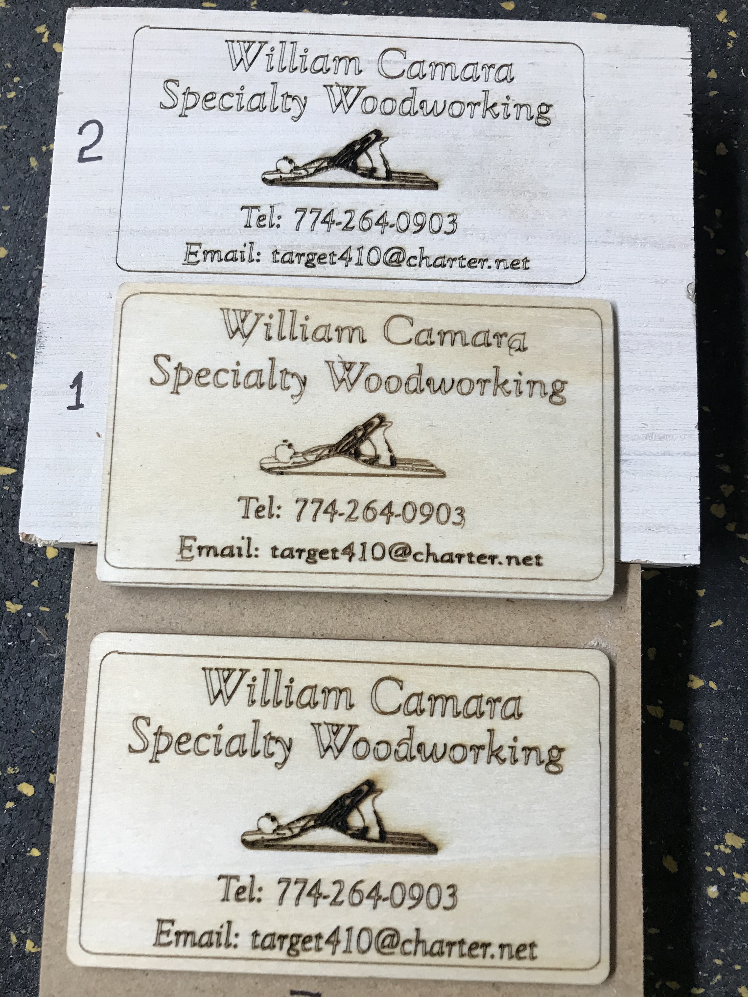 To your question I am using absolute coordinates. So first when I went to use the frame to frame the first job it stuttered and went off I shut it down and sent it back to Home. I tried it again and it went exactly to the left hand corner top to do the frame procedure I send it home once again and hit the start button and it began the burn. See my photo. The speed was so high that the whole frame was shaking I did 10 passes. It finished and then went To the center of the work board and begin trying to burn a ghost image I have a video of that I’ll try to send it. I shut it down restarted and sent it back to home I began to engrave the top right hand corner it started smoothly and then began jumping all over the board check my photo. After that burn it continued to the center of the work board again and began burning a ghost image. The laser was on but was not burning anything into the cardboardI shut it down and proceeded to the bottom left-hand corner. About 90% of the burn was complete and then it shut down just as the last engravings were Finishing. I restarted and went to the bottom right hand corner. It completed the burn and then went back and started burning a the ghost image in the middle of the workspace again.As you can see on the card there is variances especially in the right to