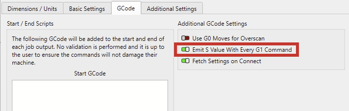 It’s a wild guess, but might help in the case. Enable “Emit S Value With Every G1 Command”