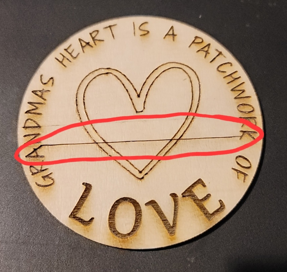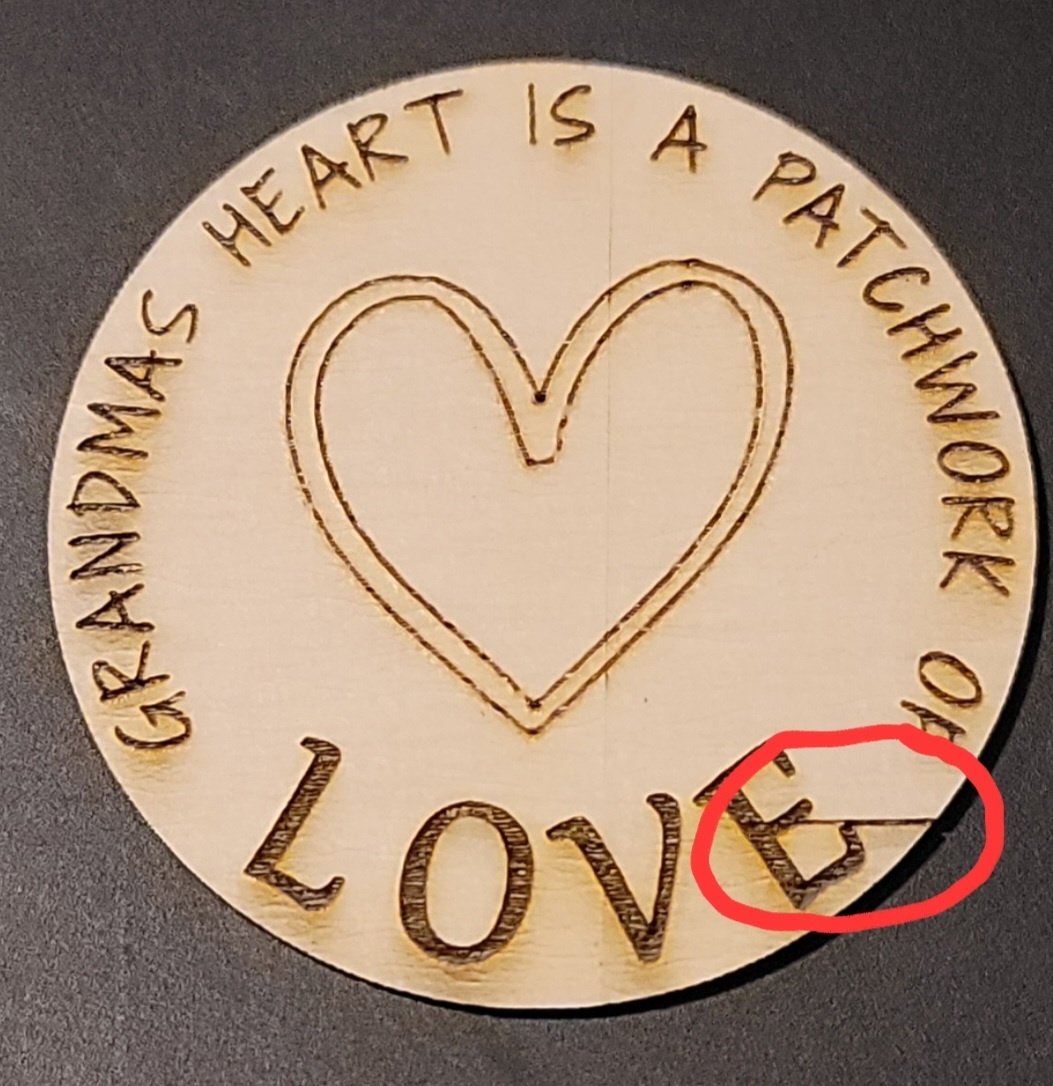 I’ve tried different files and fonts and the same problem will happen at various places but again repeats if I run the same image twice with no changes to the size, or settings. But then yesterday I ran the same engraving that had the issue but doubled it up so the G-code was forced to change and it didn’t exhibit the issue at all. I also looked to see if the problem occured at the same percentage of the run which would lend itself to the power supply or controller getting hot maybe. but this didn’t pan out either as one file will had random line at maybe 40% after 6 minutes of run time and another will occur at 90% after it runs for 12 min. Again I can run that same file immediately again and the extra line will appear in the exact same spot. I really feel that because the problem is so repeatable at the exact same location on specific images that it cant be hardware related. I could at great effort try going back to my old Arduino Mega based controller on GRBL I originally used, but that had its own issues, which is why I upgraded to the Blackbox X32.