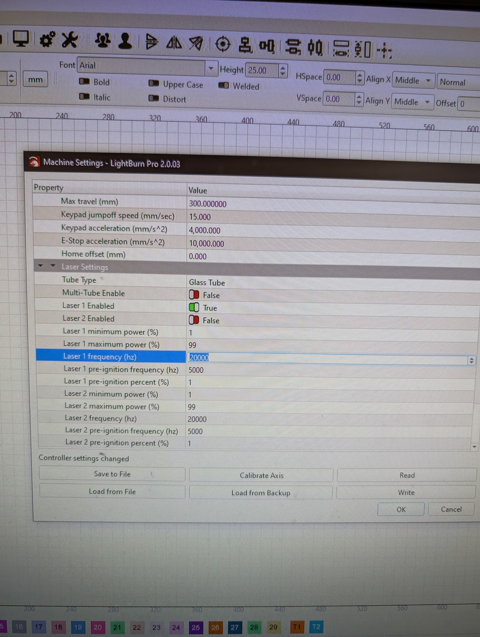 Well, we did change the frequency setting; we read somewhere that 20KHz was fine for acrylic, but that 5kHz or even 1kHz might be better for MDF.