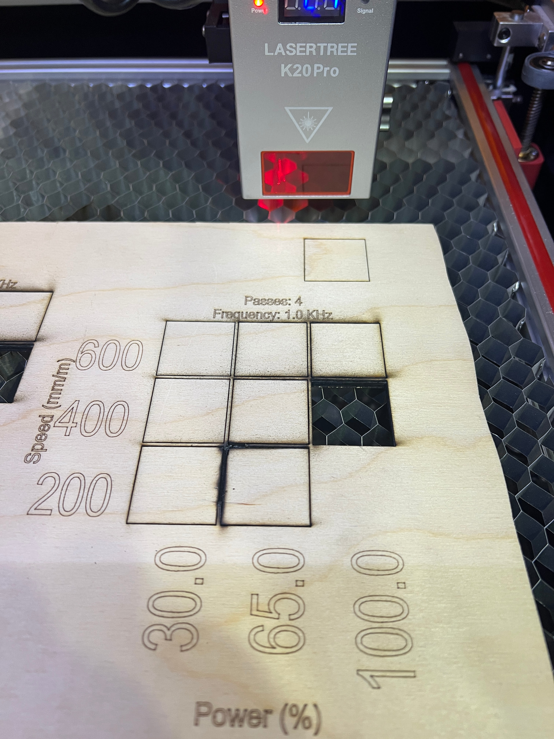 material test ran was 6x6 grid, 10% - 100% power, 100mm/m - 600mm/m, 5 passes
