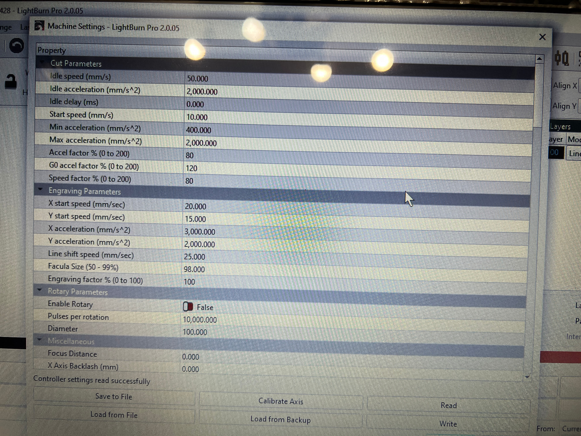So if you select 80% power, it will do the entire cut at that level and not lower to Min for corners etc. this is what had changed between the material test and the manual cut that was failing, by increasing my min to 50% from 20% corrected the cut.