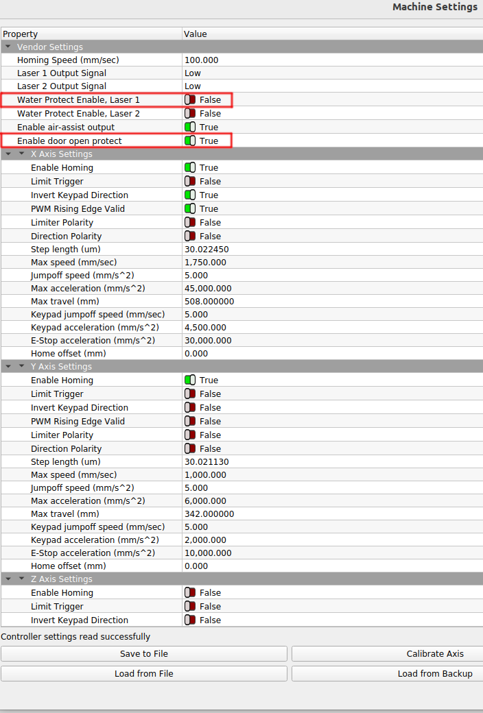 The door is always open on mine, and door protect was disabled. I simply moved the water protect to the door protect input. I’m smart enough to know when it says Door Protect error on the Ruida console, that it’s my chiller…