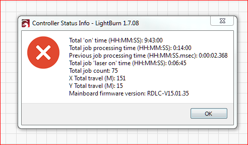 lightburn sends filed to Ruida no problems, reads the controller info can make controller changes nmo issues so lightburn is talking to laser controller et