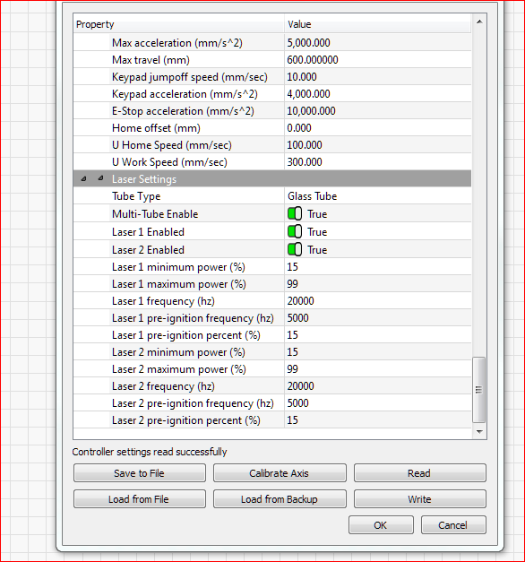 Upload screenshots of the Machine Settings so we can take a look at Laser Settings section: