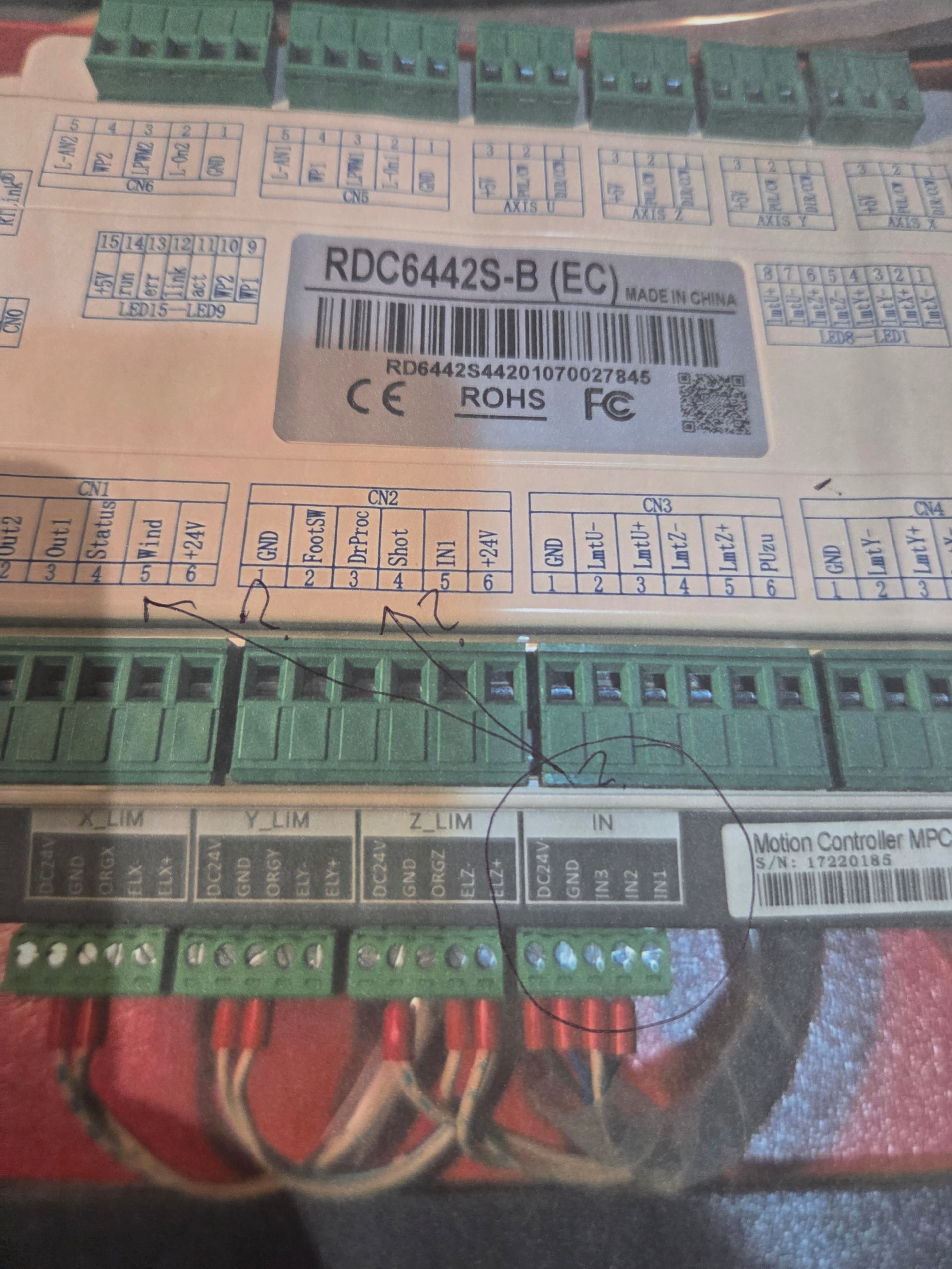 Trying to figure out pins on the leetro mpc6565 IN block to the Ruida pins any info on the pins I’m on my last block to wire: