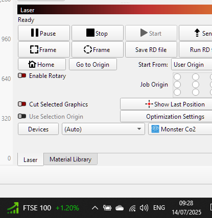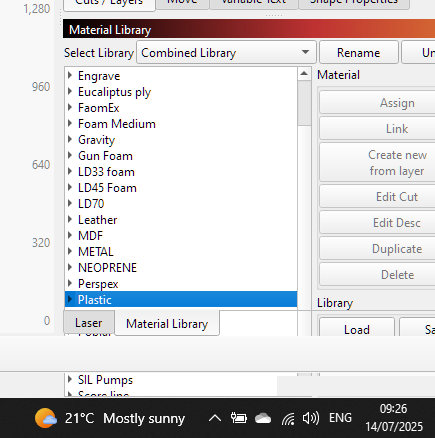 On My laptop (which runs all 3 lasers) the material library extends and dissapears off the bottom of the screen and I cannot see the bottom of it, the tabs (LASER / MATERIAL LIBRARY) Then move up into the material library window, when selecting LASER, it goes back to normal.