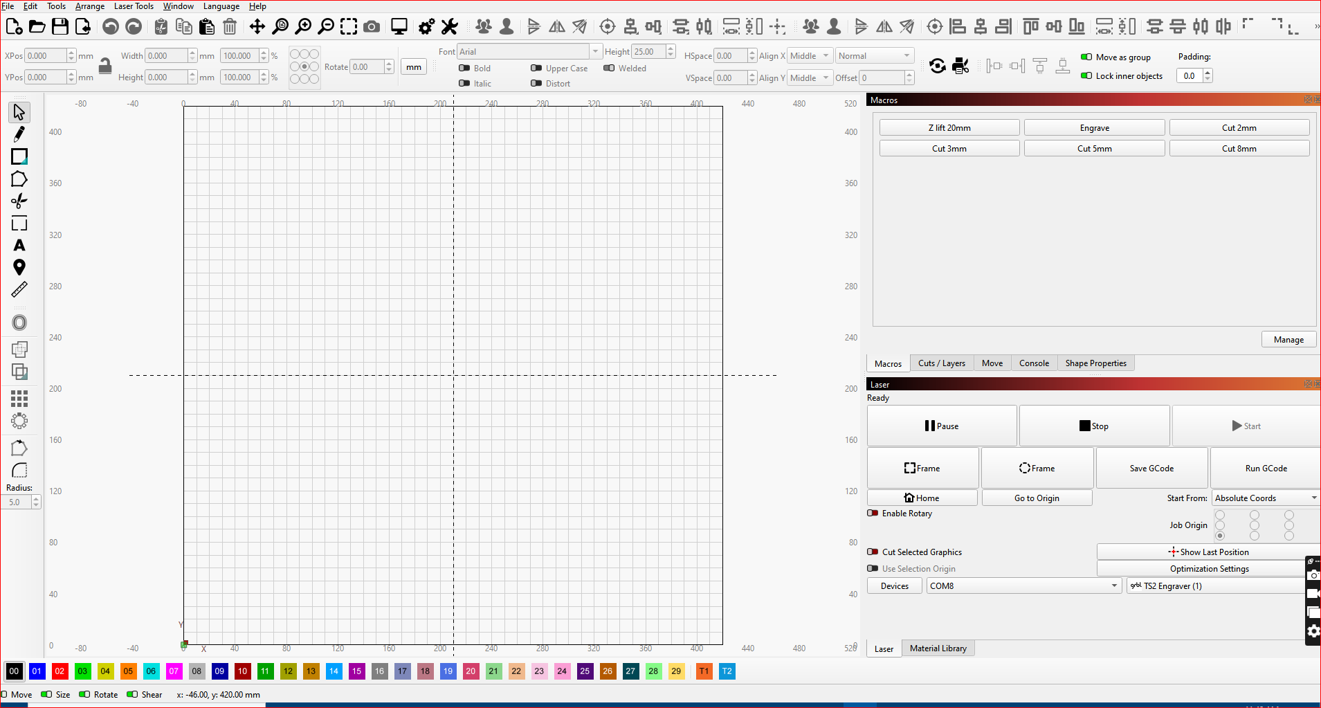 The Macro Window has a Focus/Engrave and 5 other Cut macros and on my actual working PC it has another 4 Macros . So 10 in total but a change to the Move options would allow me to no longer need these 4 macros. (see my other post).