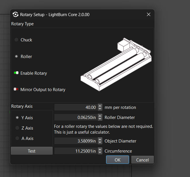 Hi there, I updated to 2.0. really haven’t had any issues until I tried to use my rotary. I’m using an Atezr L2 24watt laser with the atezr roller. I have it set correctly in lightburn and click enable rotary, but when I go to frame it is doing several complete rotations. I do have videos and pictures. I guess I can’t put the video here. if I disable rotary it seems to frame as i’d expect it to but the rotary is disabled. I might be missing something stupid but I’ve never had this issue until 2.0. thanks for the help!