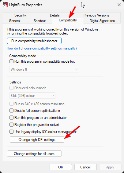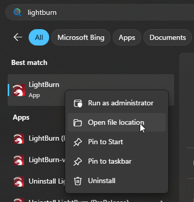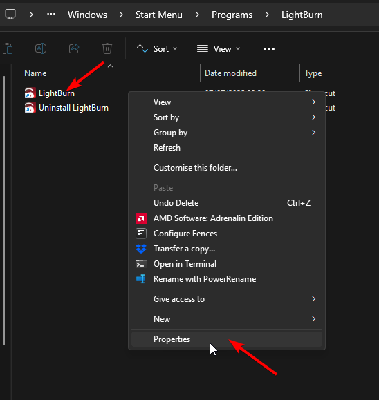 Then right-click LightBurn Icon > Properties