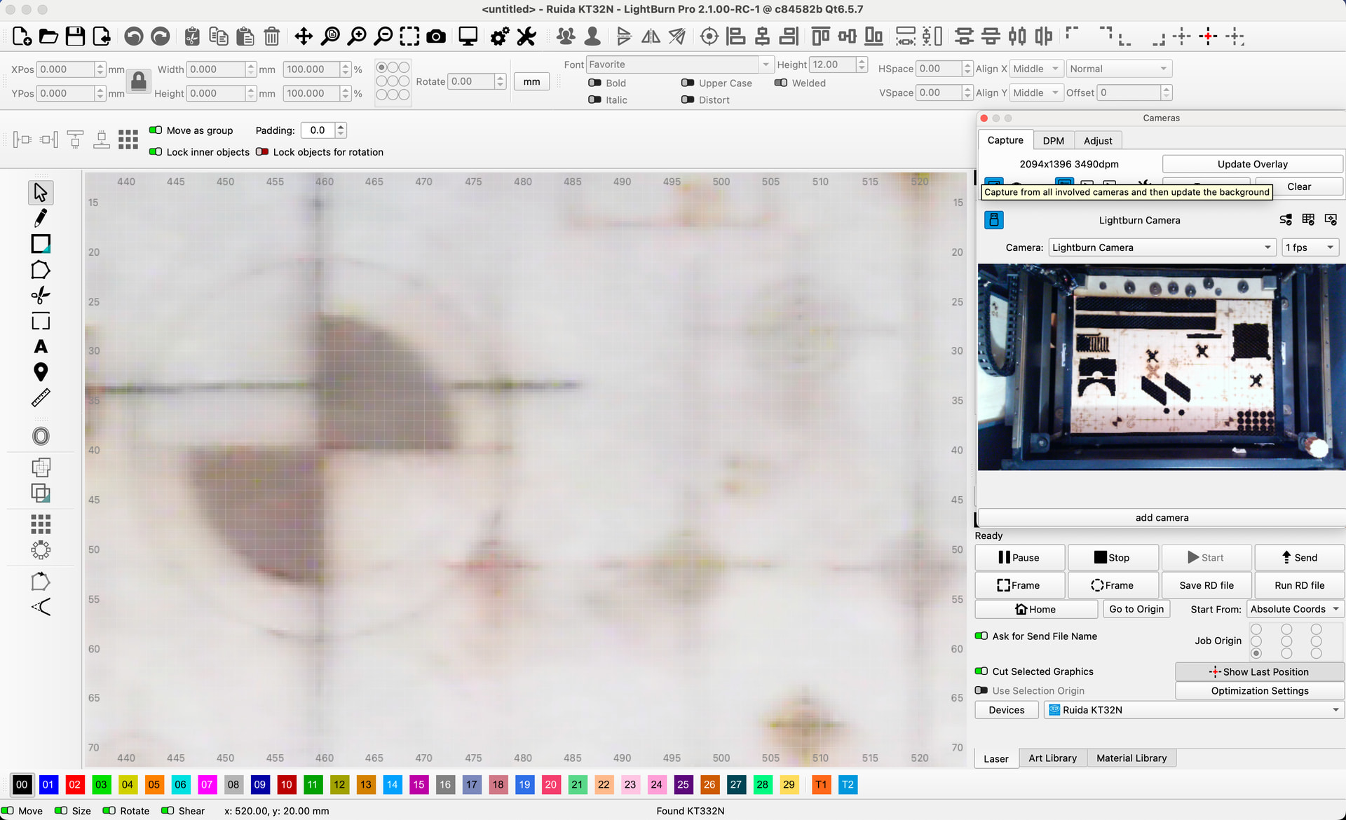With 2.1, we’ve overhauled and expanded LightBurn’s camera support, including a brand new interface for camera setup and control. Users will be able to add their camera, select from presets, and present feeds from multiple cameras in a decluttered “wall view” UI.