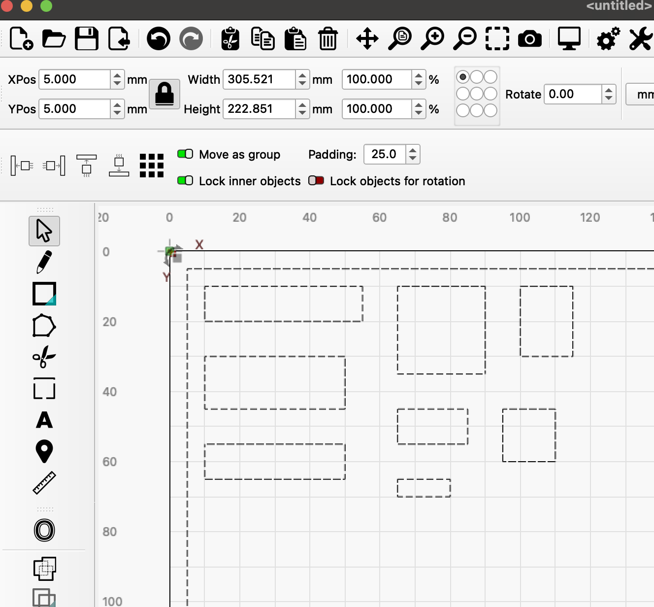 With LightBurn 2.1 we’ve got a limited version of nesting working - Quick Nest defines each object by the smallest possible rectangle that can fully contain it, then repositions all objects to squeeze them into a container in the most efficient possible layout. While not a full nesting solution, this feature packs a lot of power - more than enough for plenty of use cases. And have we mentioned that it’s blazing fast?