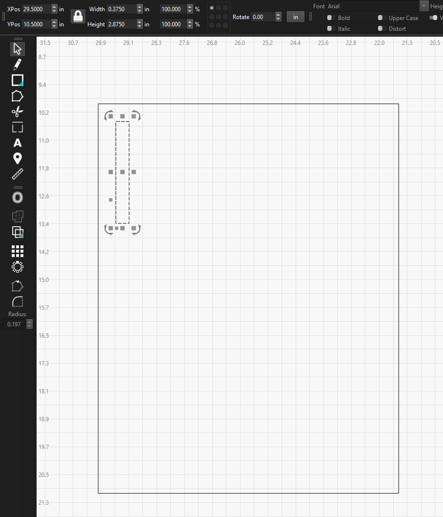 I grabbed a clothespin from my kitchen drawer and it measures 2.875" x 0.375" - so I drew that in LightBurn, along with a 8.5x11" square (a standard sheet of paper, as an example)