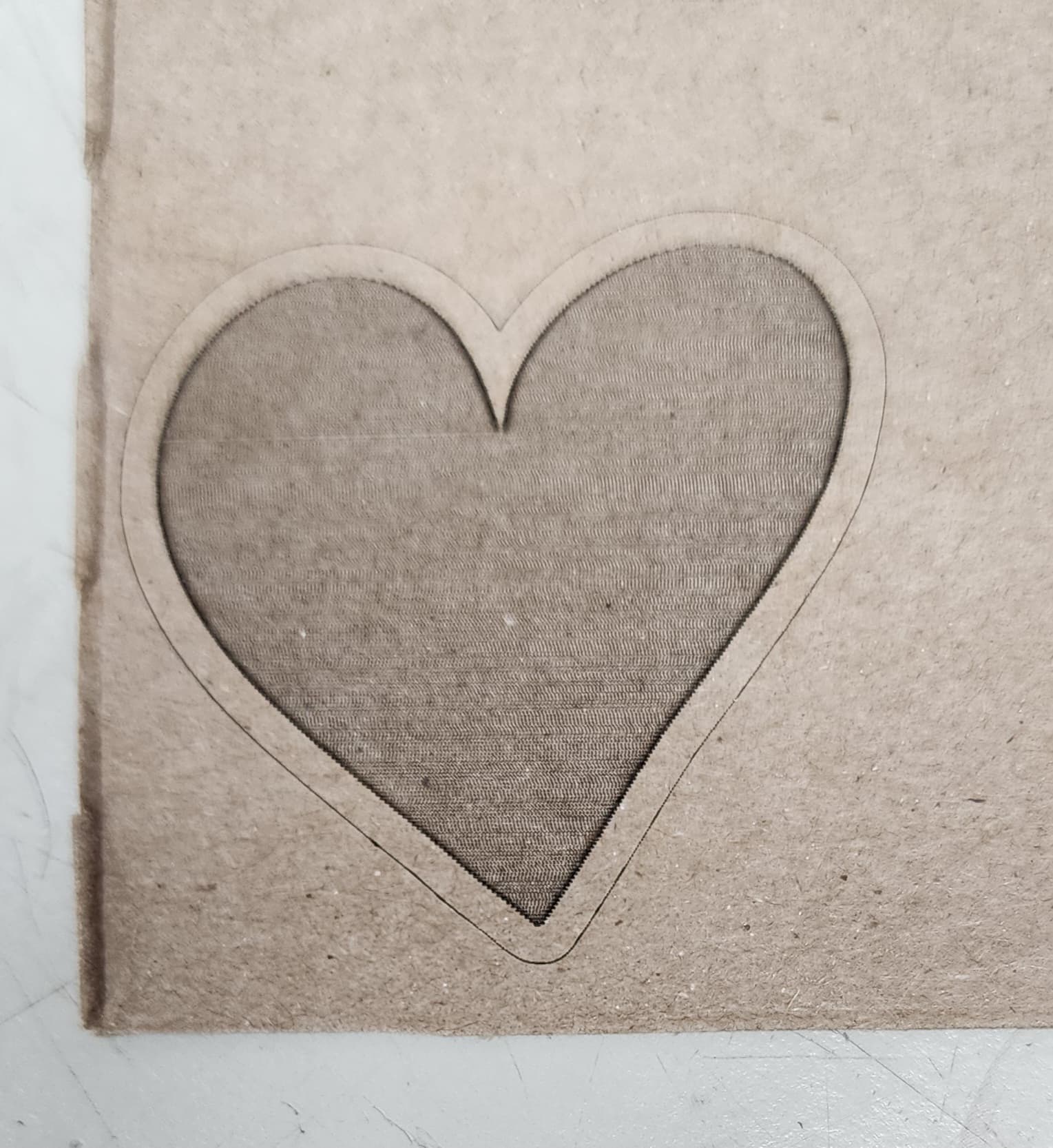 I downloaded your original Lightburn file (the one with the high speeds), and ran it at 2000mm/min and 40% fill, 60% line on cereal box cardboard with the 1.6W laser and it came out fine. Although I probably should have tweaked the overscan to 2.5% to reduce the dark edge around the inner heart, but I wanted to use your file as intact as possible.