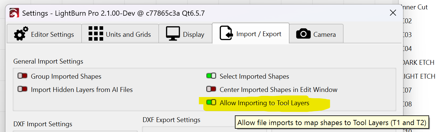 My vote would be to import all colors as is without translation. Trying to migrate from RDWorks, and all our files are in a different palette. Importing them results in different colors/layers being combined unwantedly.