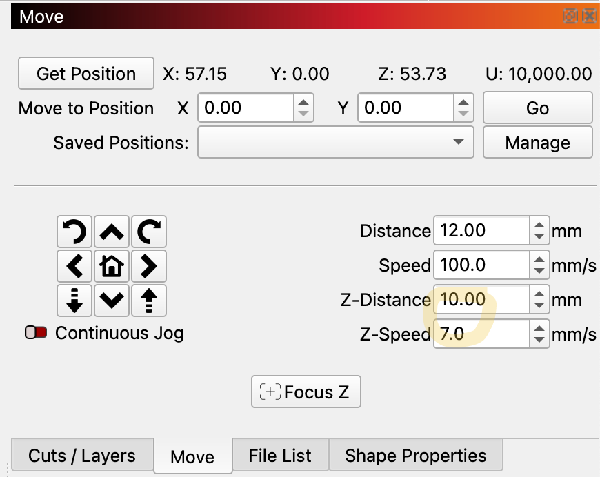 I have a Monport Onyx R Co2 Laser. This uses a Ruida controller. I used 1.7.08 and had no issues with controller the laser. Switching over to 2.0 and its variants, and the auto focus for the Z-Height no longer works. I also have an issue with trying to move in mm increments. When trying to do this, it just pushes the laser into the material until the laser errors. It will adjust when set to continuous jog, but I am unable to get it to focus properly as it moves a specific distance and then stops. I have tried the rest of the Z settings in Z-Control under device settings, but nothing helps.