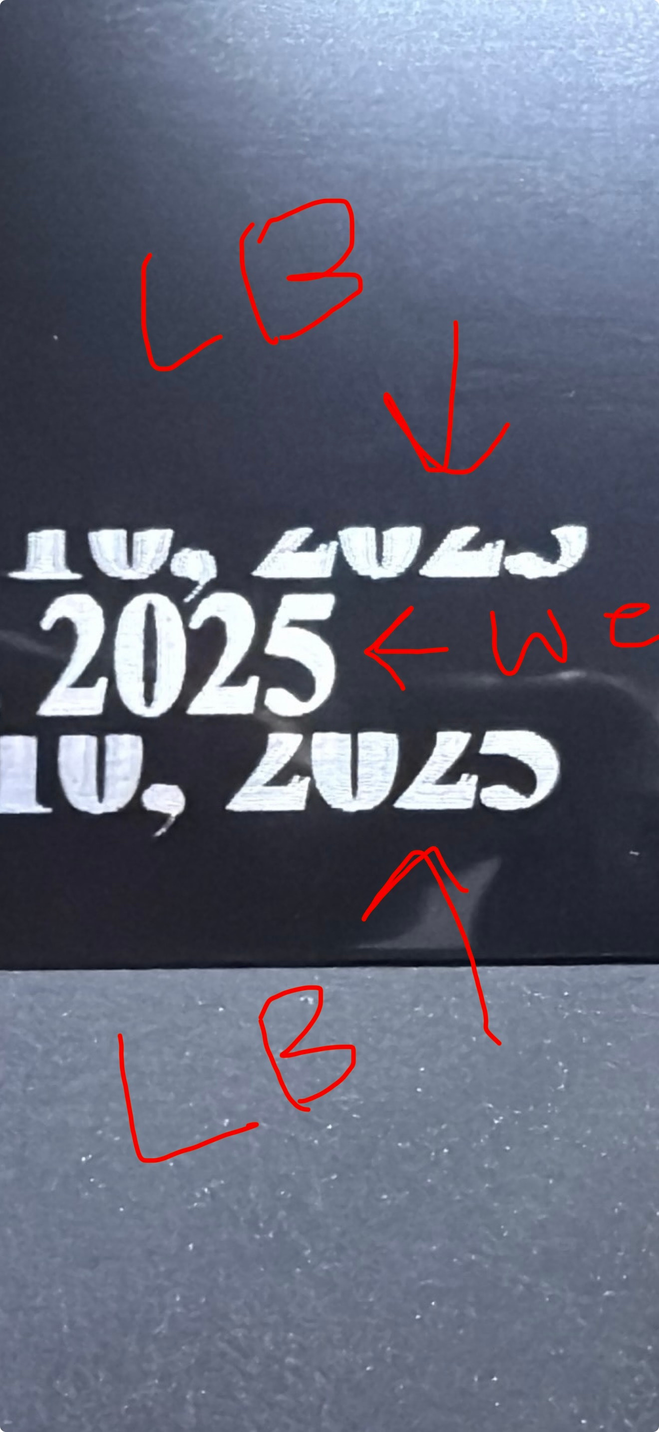 In the photo, if you zoom in on the top/bottom lines engraved in Lightburn, you can see the shadow I am referencing. The middle line was engraved on Wecreat MakeIt.