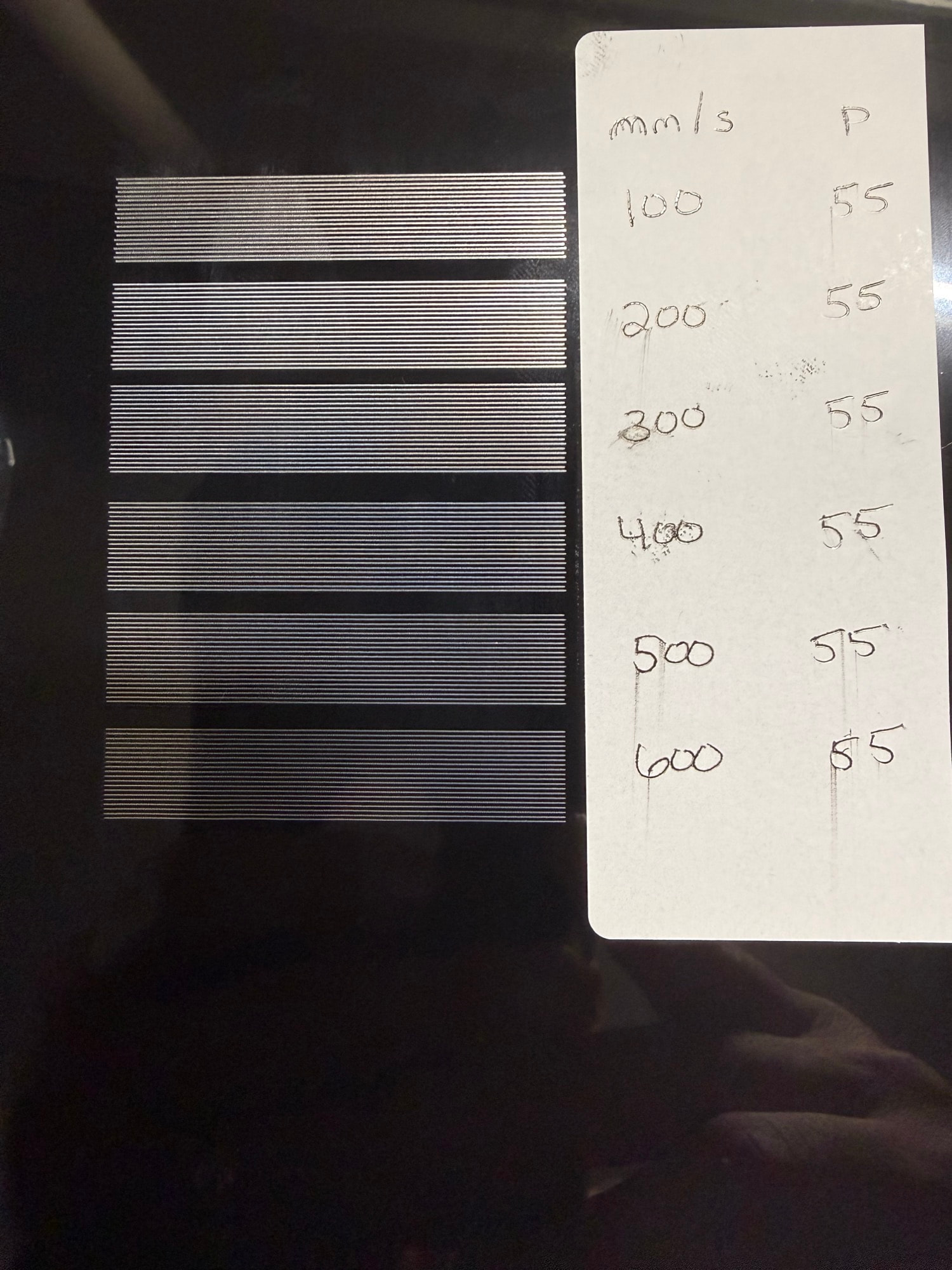Here is a picture of my Offset Adjustment Test. Seems the faster the speed, the better the engraving. I noticed during the test, the speed from 100 to 200 increased, 200 to 300 increased, but once it got to 400, 400 to 600 seems to move at the same pace.