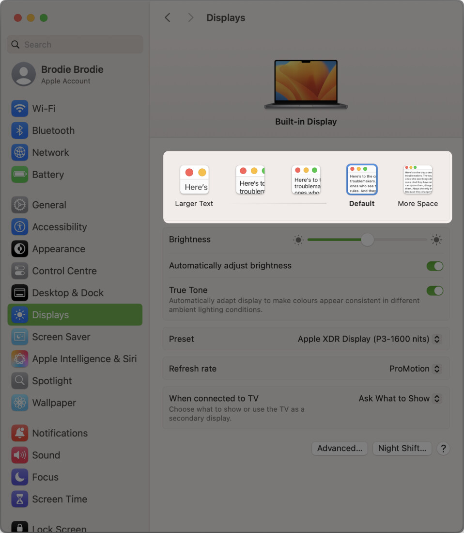 In the âDisplayâ settings I tried. On a Macbook 16" M1 macOS 15.6 itâs fine, but after moving the window to the hp EliteDisplay E231 monitor, the icons change as shown in the screenshot
