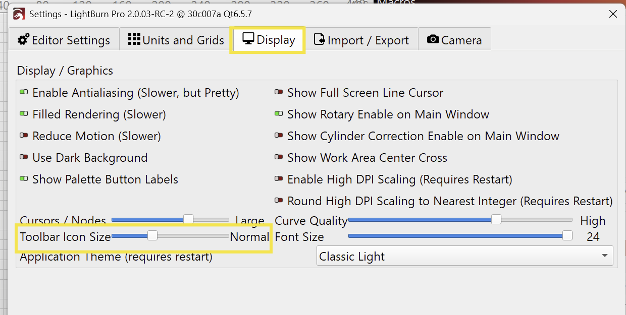 Itâs a shot in the dark, but please see if changing the âToolbar Icon Sizeâ to a lower value and back helps. (Click OK in between to save the new value)